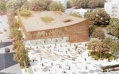 Video of the works of the Sainte Geneviève des Bois community mediatheque with our associated architects on this project CALMM architecture.