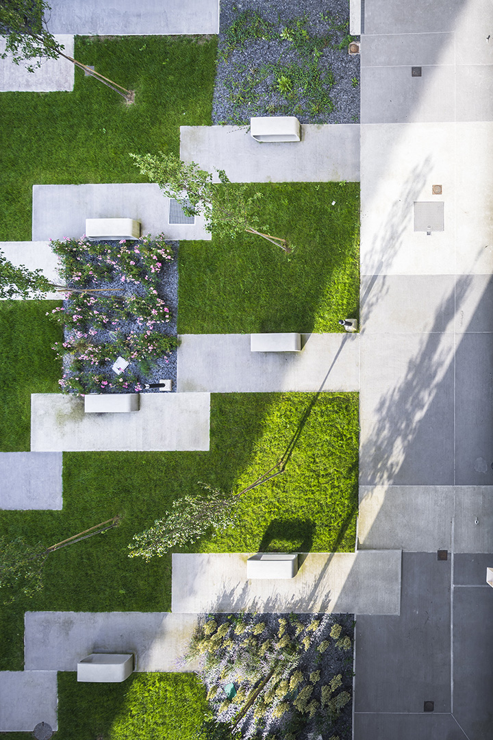 Le projet est homogène, même si au regard attentif apparaissent des différences de hauteurs dues à la combinaison des différents programmes. La diversité des volumes proposés pour l’îlot 1 en pleine lumière du sud en fait l’élément principal de la composition de la Place.