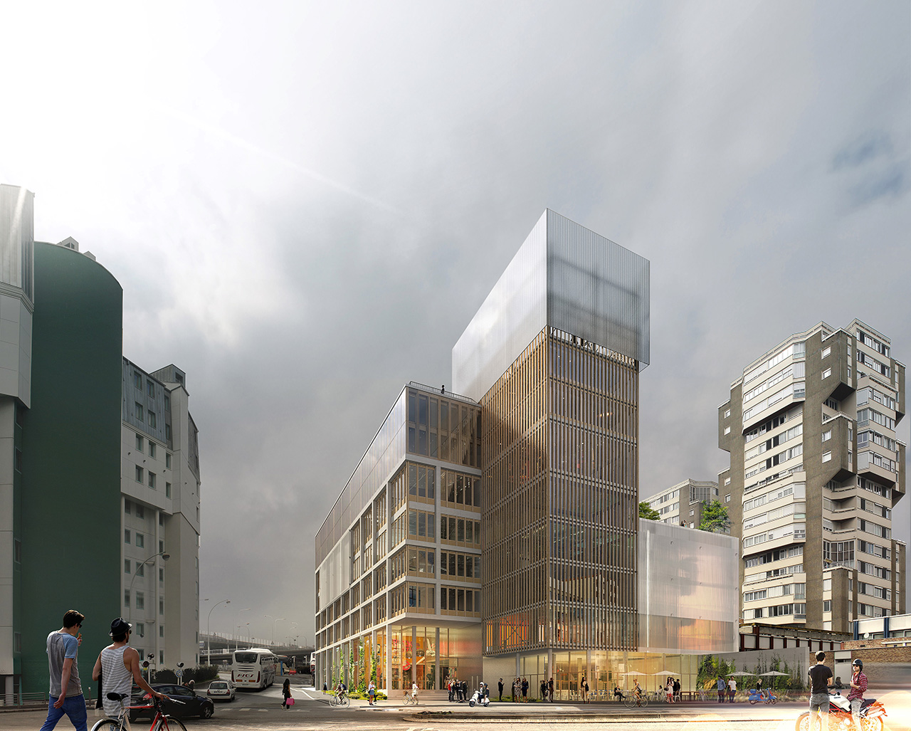 Le projet propose d’engager les acteurs du projet, comme les habitants, sur les pas d’une approche rationnelle, visionnaire et durable de la transformation urbaine. Cette structure en béton armé construite en 1977 sera conservée pour y réaliser un projet plus pertinent tant du point de vue écologique qu’économique, moins traumatisant pour le quartier.  Le bâtiment sera augmenté d’une structure en portique qui permettra une surélévation légère en bois.